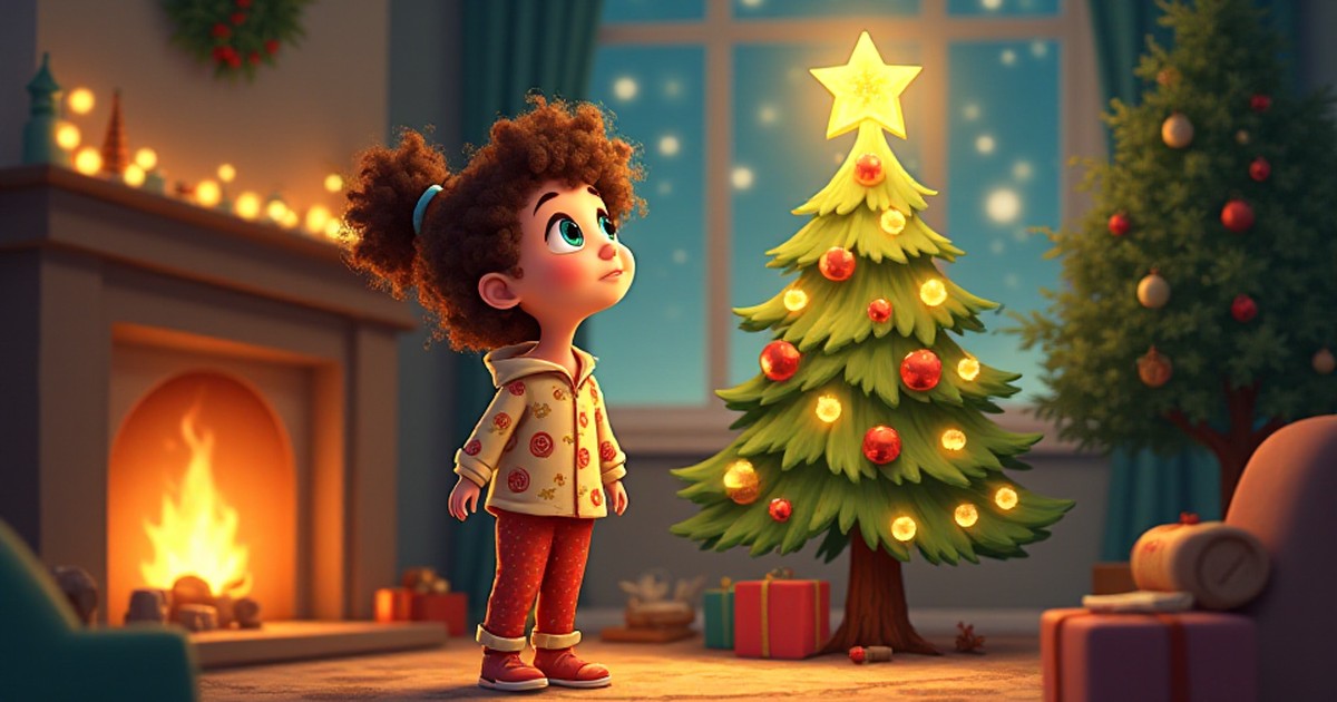 The star sparkled, making the whole room glow with Christmas magic. Hannah felt a warm, happy flutter in her tummy. It wasn't just about reaching the star; it was about being brave enough to try, and even braver to ask for a helping hand.